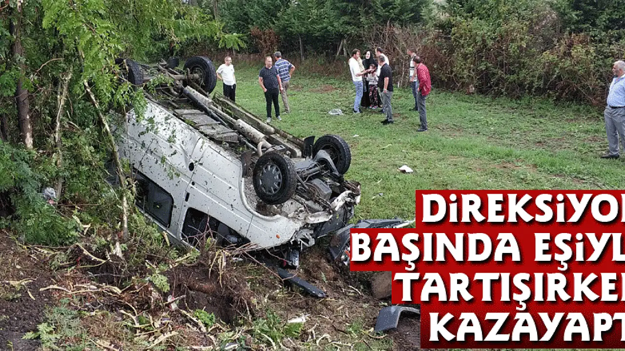 Samsun'da direksiyon başında eşiyle tartıştığı iddia edilen minibüs sürücüsünün aracıyla yoldan çıkarak şarampole yuvarlandığı kazada 5 kişi yaralandı.