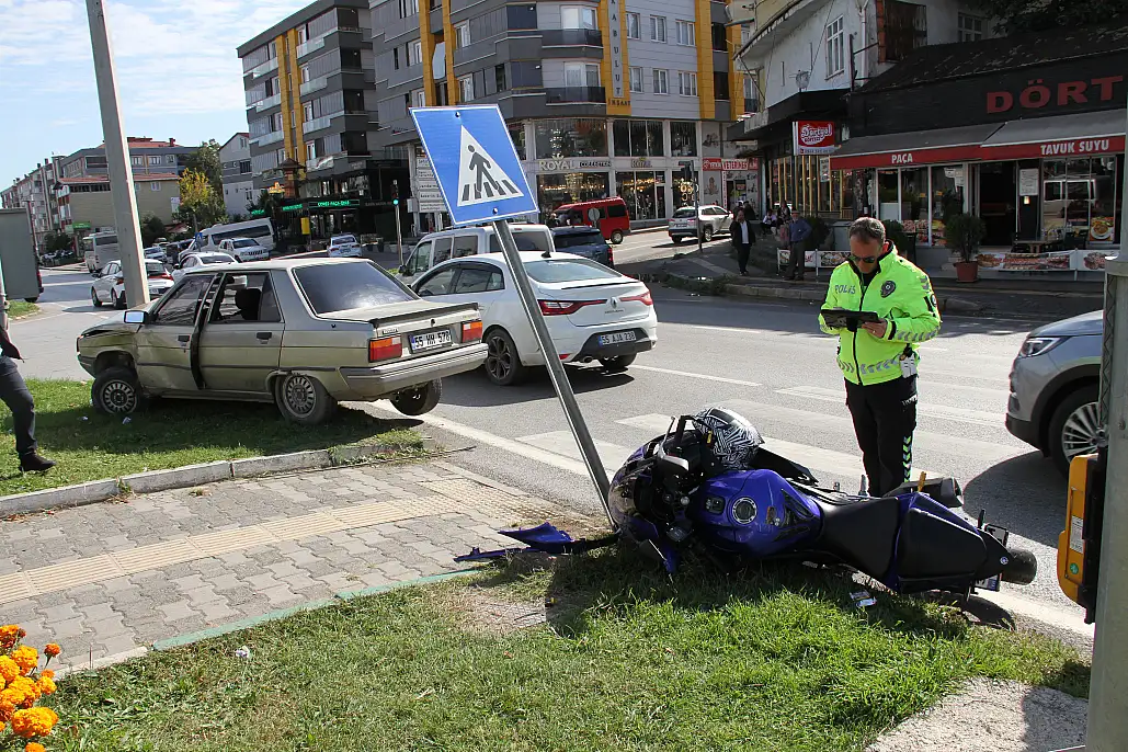Direksiyon hakimiyetini kaybetti, elektrik direğine çarparak durabildi