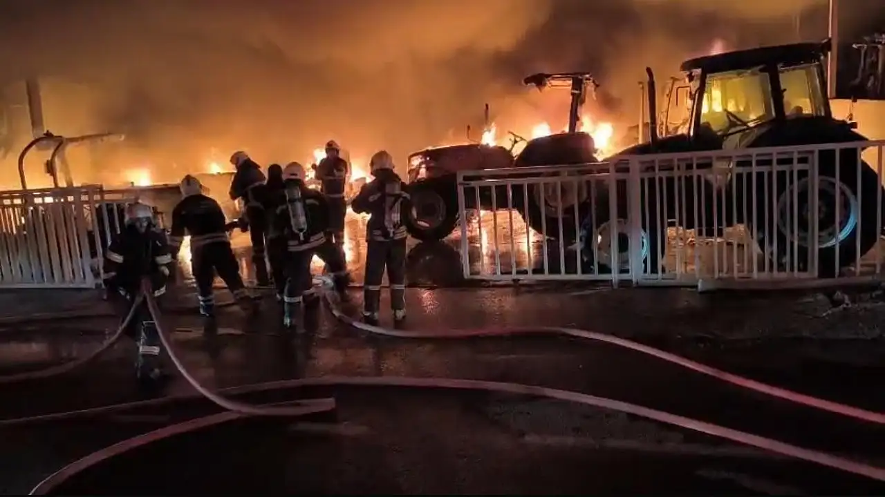 Diyarbakır'ın merkez Kayapınar ilçesindeki Traktörcüler Sitesi'nde çıkan yangında 3 dükkan, 22 traktör ve 1 otomobil yanarak kullanılamaz hale geldi.