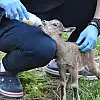 Erzurum'un İspir ilçesinde 10 günlükken doğada bitkin halde bulunan dağ keçisi yavrusu, Kars Kafkas Üniversitesinde veteriner hekimlerce biberonla büyütülüyor