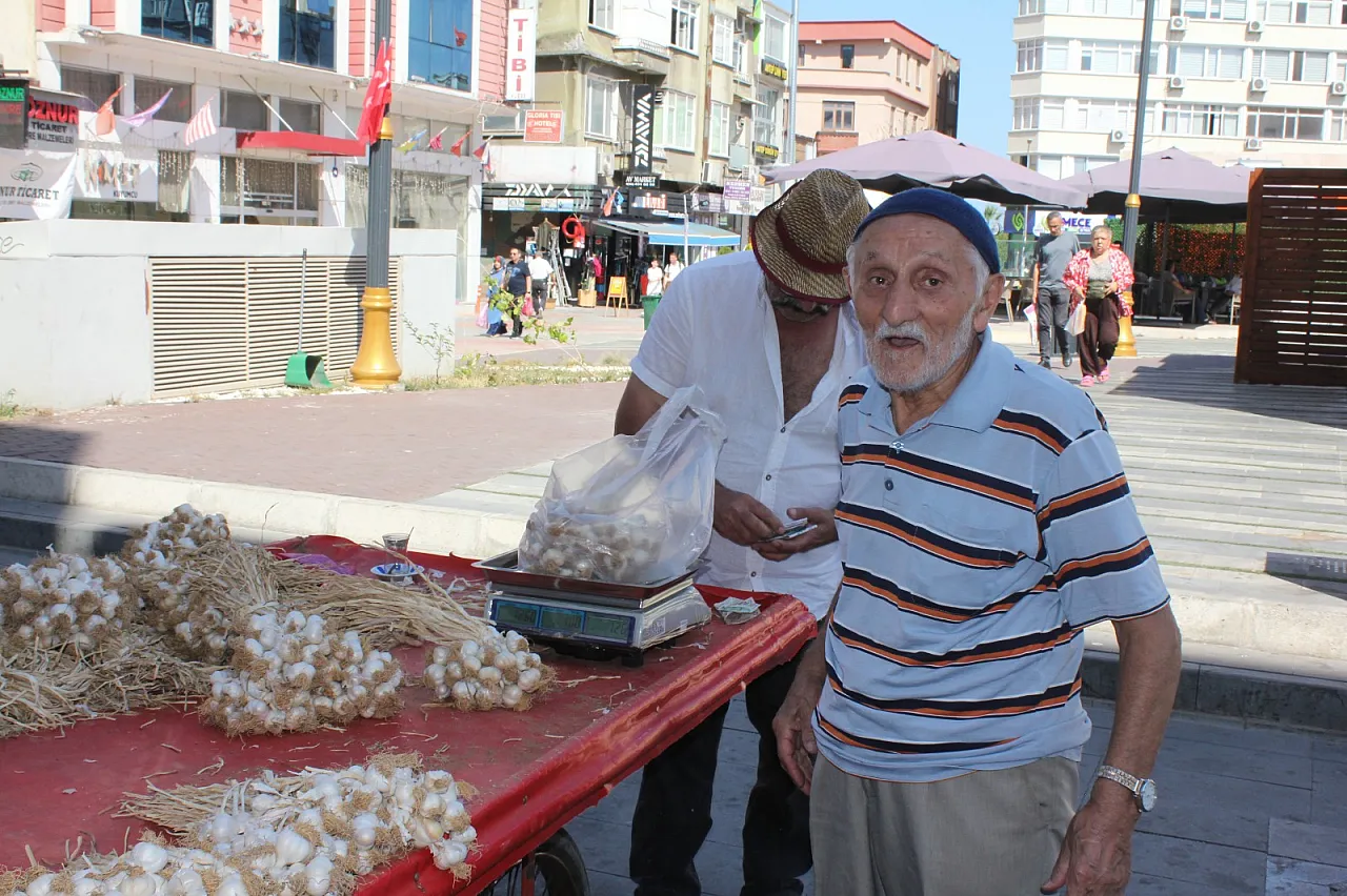 Samsun’un İlkadım ilçesinde seyyar satıcılık yaparak geçimini sağlayan esnaf Hikmet Ural, Kastamonu’nun Taşköprü sarımsaklarını satışa sunuyor. Türkiye’nin en kaliteli sarımsak türlerinden biri olarak bilinen bu ürün, dayanıklılığı, aroması ve sağlık açısından sunduğu faydalarla dikkat çekiyor. Özellikle antibakteriyel özelliği nedeniyle “doğal antibiyotik” olarak anılan Taşköprü sarımsağı, Esnaf tarafından satılarak ev hanımlarının mutfaklarda ilk tercihi ve de gripten diş apsesine kadar birçok rahatsızlık için doğal şifa kaynağı olarak görülüyor.