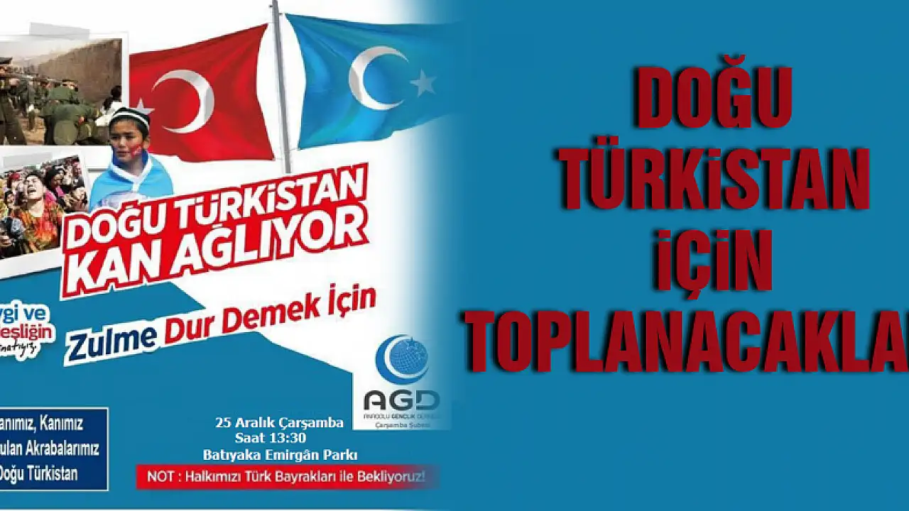 Doğu Türkistan'da yaşanılan zulme dur demek için Anadolu Gençlik Derneği Çarşamba Şubesi tarafından Çarşamba Zübeyde Hanım Meydanı'nda açıklama yapılacak.