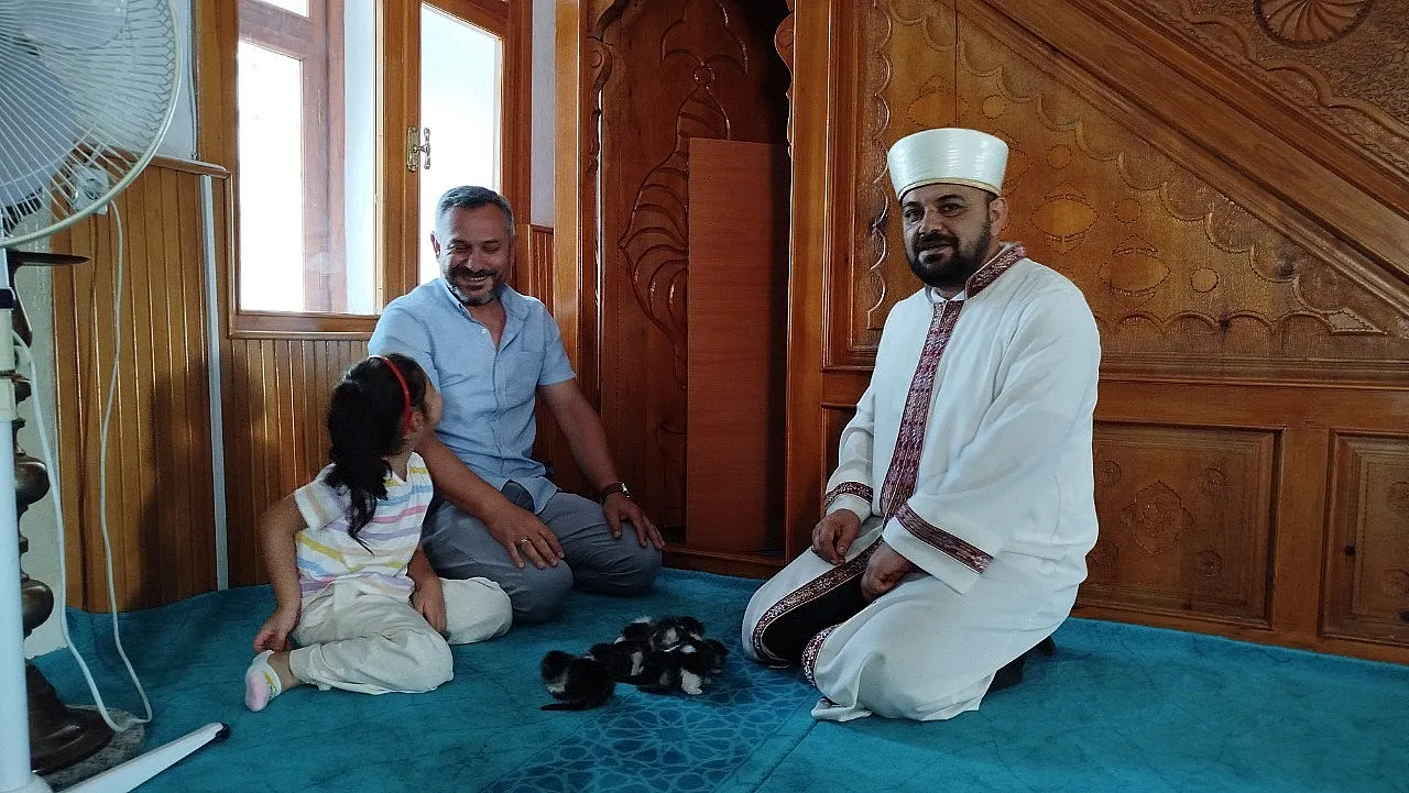 Anne kedinin yavrularını taşırken bir tanesinin pencereye sıkıştığını belirten İmaret Camii İmamı Ömer Kılıçsokan, "Yavru neredeyse ölmek üzereydi. Cemaatten bir kişi kalp masajı yaparak onu hayata döndürdü. Bizler de ona ve yavrularına sahip çıkıyoruz" diye konuştu.