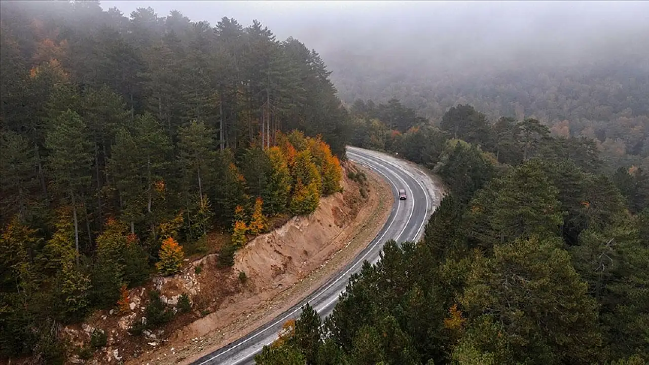 Kütahya ile Bursa il sınırları arasındaki Domaniç Dağları'nda sonbaharın renkleri, sis bulutuyla bütünleşerek tüm güzelliğini göstermeye başladı.