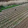 Sivas'ın Şarkışla ilçesinde ektiği domates fidelerini soğuk ve dolu yağışından korumak isteyen çiftçinin aldığı önlem görenlerin dikkatini çekiyor.Domates fidelerini doludan korumak için bulduğu çözü