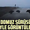 Çorum'un Alaca ilçesinde yoldaki araçların önüne çıkan domuz sürüsü vatandaşlar tarafından görüntülendi.