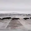 Tokat'ın Zile ilçesinde köy yoluna inen domuz sürüsü görüntülendi.