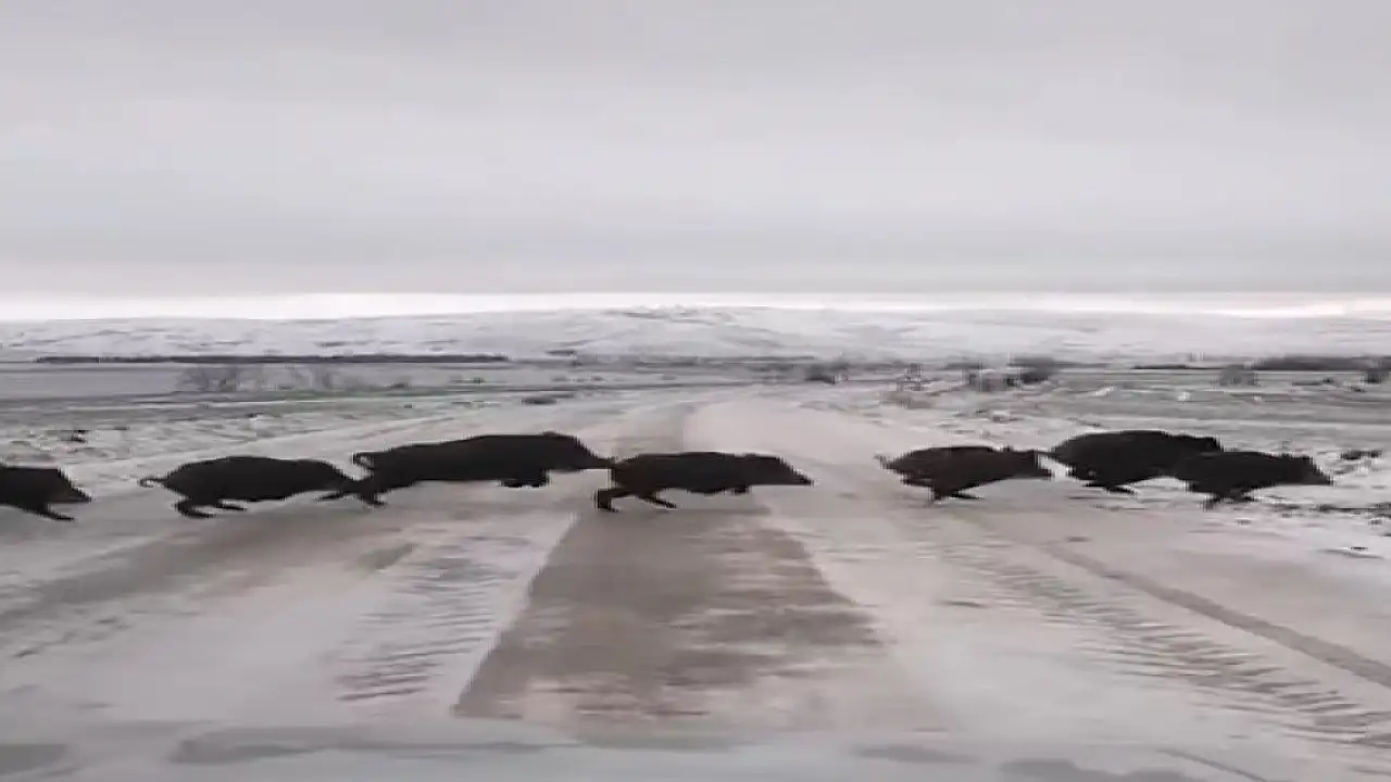Tokat’ta etkili olan kar yağışı nedeniyle yaban hayvanları yiyecek bulmakta zorlanıyor. Kızılcin köyünden kendi aracıyla Zile ilçesine giden Erkan Özkara, Yıldıztepe Barajı bölgesinde domuz sürüsünü gördü. Özkara, karlı bölgede toprak yolda ilerleyen domuz sürüsünü cep telefonu kamerası ile kayda aldı. Yiyecek aradıkları tahmin edilen sürü aracın önünde geçerek hızla uzaklaştı.