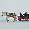 Kars'da yüzeyi tamamen buzla kaplı Çıldır Gölü'nde atlı kızak heyecanı devam ediyor.