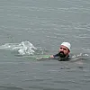 Van Gölü'nün dalgalı olduğunu ifade eden Türken, "Bugün Van Gölü hem dalgalı hem soğuk. Su dalgalı olduğu için özellikle yüzme açısından biraz zor görünüyor. Daha önce hiç dalgalı suda kışın yüzmedim. Bugün benim için de bir ilk oldu. Güzel de oldu. Keyifli bir anlar yaşıyoruz" diye konuştu.