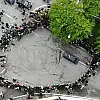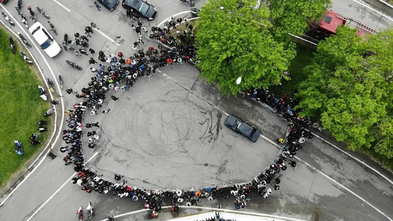 Yaşanan tehlikeli gösterisi dron ile görüntülendi. Bazı otomobillerin lastikleri de yanarak patladı.