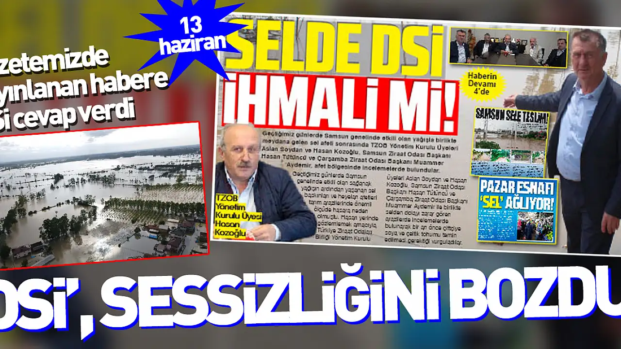 Çarşamba ve Terme ilçelerinde geçtiğimiz günlerde tarım arazilerinin sular altında kaldığı su baskınlarında DSİ ihmalinin olduğu iddialarının gündeme gelmesinin ardından DSİ, sessizliğini bozdu