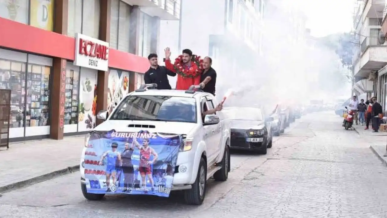97 kiloda dünya 2.'si olan Mustafa Olgun, Samsun'un Yakakent ilçesinde coşkuyla karşılandı