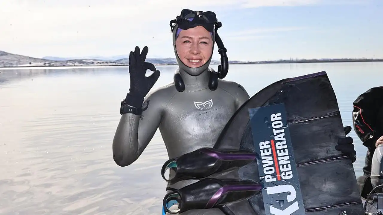 Milli sporcu Birgül Erken, tek nefeste en uzun mesafe buz altı serbest dalış dünya rekorunu kırmak için antrenmanlarını sürdürüyor.