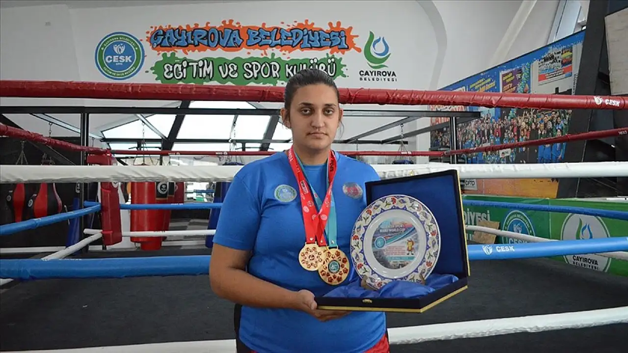 Çayırova Belediyesi Eğitim ve Spor Kulübü sporcusu 18 yaşındaki Sinem, 3 yıl önce kardeşinin antrenmanını izlerken tanıştığı antrenörü Murat Aydın'ın yönlendirmesiyle kick boksa başladı.Konya'da geçen ay düzenlenen Türkiye Kick Boks Şampiyonası'nda altın madalyaya uzanan Sinem, Macaristan'da 23 Ağustos-1 Eylül'de düzenlenecek Gençler Dünya Kick Boks Şampiyonası'nda kürsünün zirvesini hedefliyor.Sinem, AA muhabirine, azimle çalışarak Türkiye şampiyonu olduğunu ve Macaristan'daki turnuvada altın madalyayı hedeflediğini söyledi.Kendini geliştirmek için her gün antrenman yaptığını dile getiren Sinem, "Kulübe kardeşimi izlemeye gitmiştim. Sonra hocamız beni fark etti. Fiziğimden dolayı bu spora başlamamı söyledi. Ben de o şekilde başladım. 3 sene geçti, sırayla kuşaklarımı aldım, bitirdim." diye konuştu.Antrenör Aydın da sporcusu Sinem'in bu yıl katıldığı 3 büyük turnuvada şampiyon olarak milli takıma girmeye hak kazandığını aktardı.Sporcusunun dünya şampiyonasına çok iyi hazırlandığına değinen Aydın, hedeflerinin altın madalya olduğunu ifade etti.