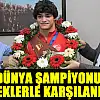 Dünya şampiyonu güreşçi çiçeklerle karşılandı