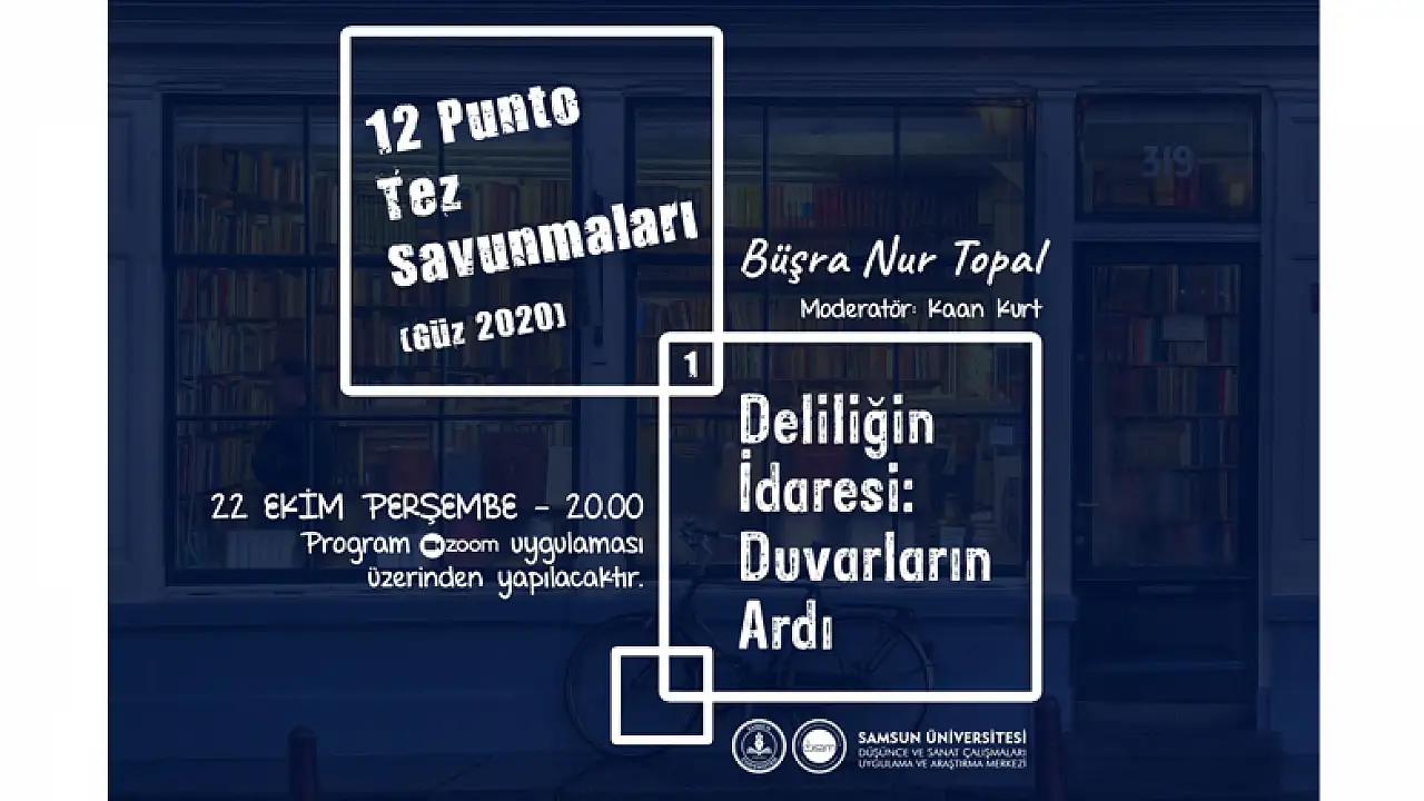 12 Punto Tez Savunmaları’nın ilkinde, Büşra Nur Topal’ın delilik olgusunu sosyolojinin bilgi üretme prosedürleriyle ele aldığı saha çalışmasını aktaracağı, “Deliliğin İdaresi: Duvarların Ardı” başlıklı savunma gerçekleşecek. Kaan Kurt moderatörlüğünde düzenlenecek olan etkinlik, ilgi duyan bütün katılımcılara açık olup katılımcılar, 20 dakikalık tez sunumunun ardından soru-cevap bölümünde katkı sağlayabilecekler.