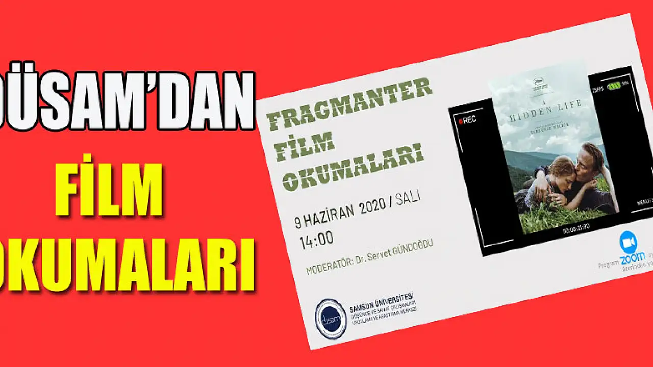 SAMÜ Düşünce ve Sanat Çalışmaları Uygulama ve Araştırma Merkezi tarafından “Fragmanter Film Okumaları” etkinliği gerçekleştirilecek. Etkinlikte sinemanın büyülü dünyası çok daha yakından incelenecek. Filmdeki görsellik ve senaryonun yanı sıra bunların anlatım ve aktarım biçimleri ele alınacak. Anlatımı destekleyen unsurların içerdiği anlamlar ve oluşturduğu etkiler üzerinde konuşulacak.