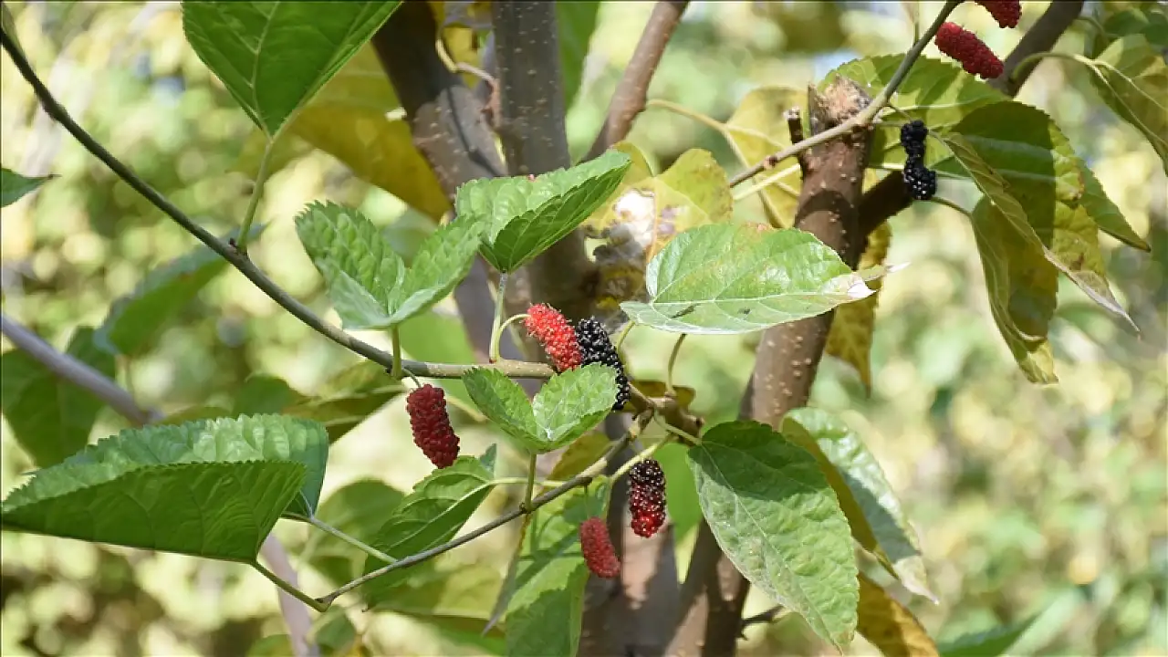 Dut ağacı sonbaharda meyve verdi