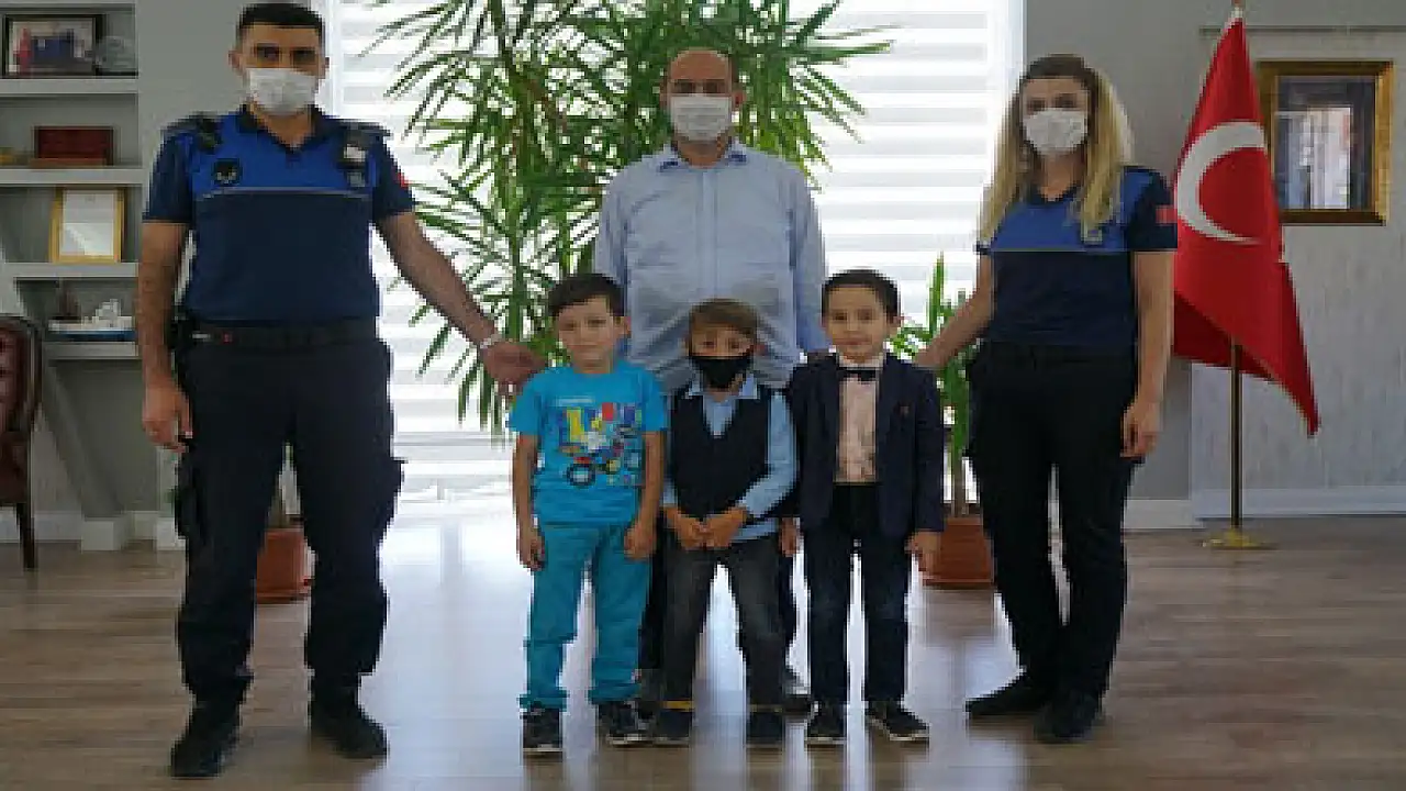 Yaşları küçük 3 çocuğun buldukları parayı zabıta ekiplerine teslim ettiğini öğrenen Terme Belediye Başkanı Ali Kılıç, çocukları makamında ağırlayarak hediyeler verdi.