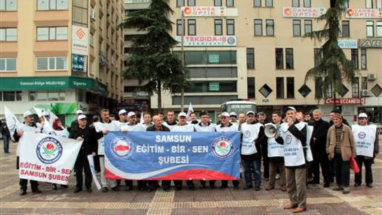 Cumhuriyet Meydanı'nda yapılan eylemde grup adına basın açıklaması yapan Eğitim-Bir Sen Samsun Şube Başkanı Nejdet Güneysu, "Biz öğretmenler eşit işe eşit ücretin neresindeyiz? Sosyal ve mali haklarımızın iyileştirilmesi için eğitim çalışanlarının emeğinin karşılığını ülke gelişmişliği düzeyinde alması gerektiğine inanıyoruz ve bunu her platformda savunuyoruz. Eğer hükümet eşit işe eşit ücrette samimi ise bu eşitlik ek ödemelerle veya çeşitli tazminatlarla değil, temel ücretlerde iyileştirme ile