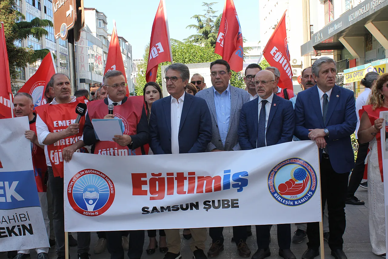 2024/2025'in adaletsizlik yılı olduğunu söyleyen Eğitim-İş Samsun Şube Başkanı Onur Gündüz, "2024/2025 eğitim-öğretim yılı sona erdi ancak ardında çözümsüz sorunlar, derinleşen eşitsizlikler ve adaletsizliklerle dolu bir tablo bıraktı. Eğitim sistemi, yıl boyunca güven vermeyen, huzursuzluk yaratan ve karanlık bir gelecek vaat eden bir yapıya büründü." diye konuştu.