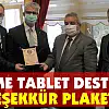 Plaket takdimi öncesinde Toraman ve Zeren, Kaymakamlığı ziyaret eden öğrenciler ile tanıştı. Ardından öğrencilerin de katılımıyla gerçekleşen görüşmede, öğrencilere klavyeli tabletleri Kaymakam Doç. Dr. Şükrü Yıldırım tarafından verildi.