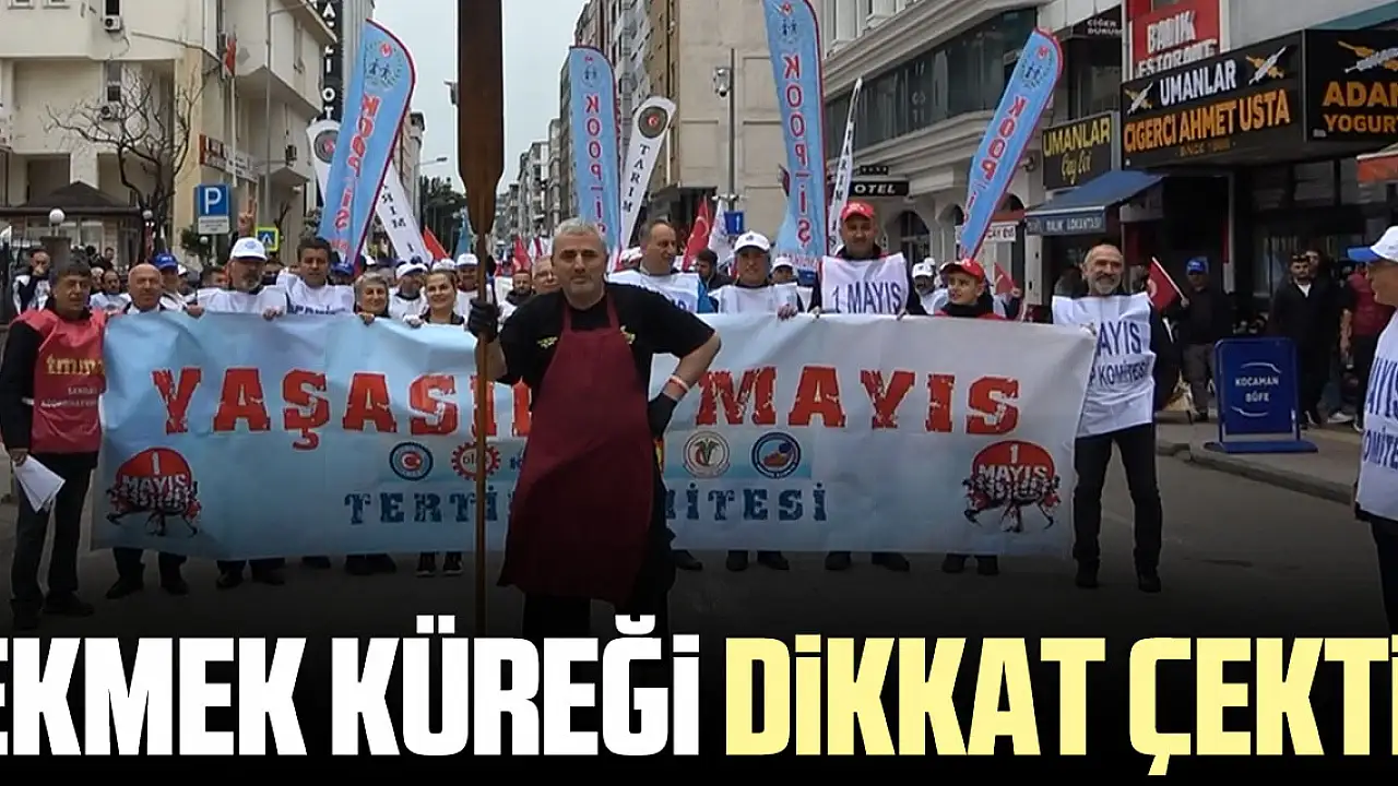 1 Mayıs İşçi ve Emekçi Bayramı'nda Samsun'da gerçekleştirilen yrüyüşte ekmek küreğiyle bulunan Fırın İşçisi dikkat çekti.