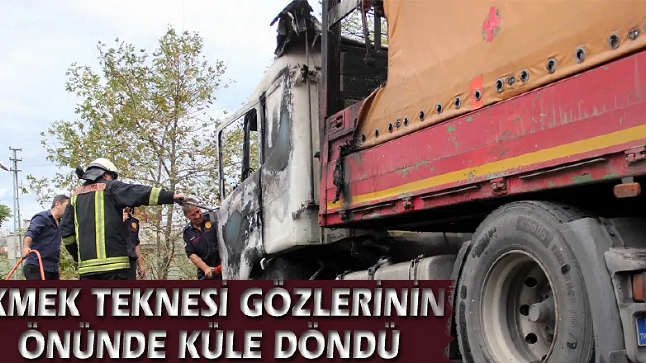 Samsun'da bir şoförün garaja park ettiği tırı gözlerinin önünde yanarak küle döndü.