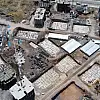 450 daireden oluşan 26 bloğun kaba inşaatı tamamlanırken, bitirilen bloklarda iç ve dış sıva çalışmaları yapılıyor.