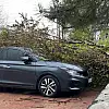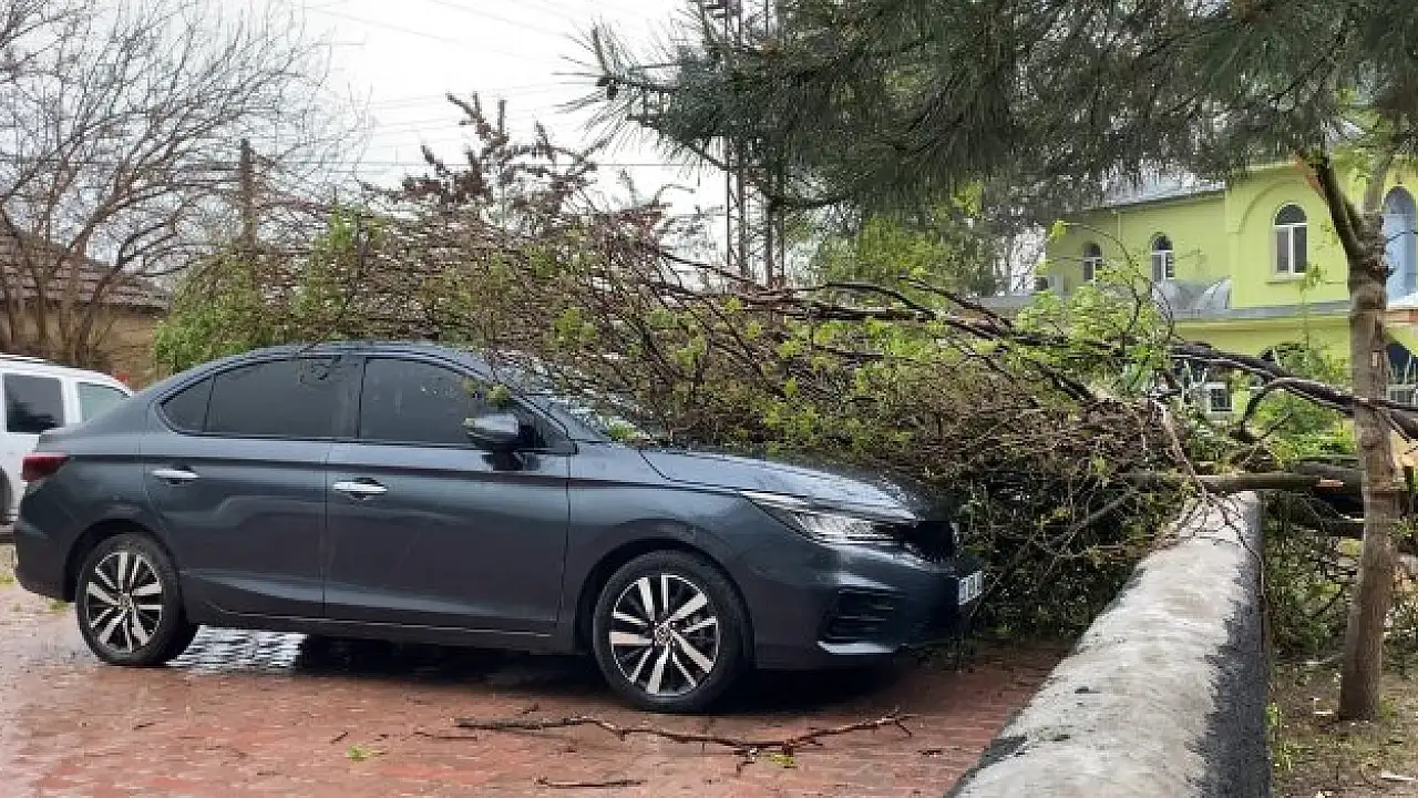 Elazığ'da fırtına etkili oldu. Ağaç, araçların üzerine devrildi