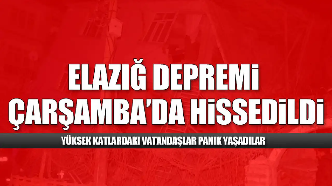 Depremin etkisi Çarşamba ilçesinde özellikle yüksek katlı binalarda hissedilirken binalarda oturan vatandaşlar kısa süreli panik yaşadılar. Evlerinden dışarıya çıkan vatandaşlar bir müddet açık alanda beklediler. Yaşanan depremde Çarşamba İlçesi’nde herhangi bir can ve mal kaybı olmadığı öğrenildi. BAKAN SOYLU’DAN DEPREM AÇIKLAMASI İçişleri Bakanı Süleyman Soylu, “Depremde 6 kişi hayatını kaybetti. Bize ulaşan bilgilere göre Elazığ'da 44, Malatya'da 40 olmak üzere 84 kişi yaralandı.” dedi.