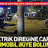 Elektrik direğine çarpan otomobil ikiye bölündü