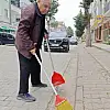 Samsun'un yaşayan 62 yaşındaki Faik Olgun, evinin yanı sıra sokakta da elinde süpürge ve faraşla temizlik yapıyor