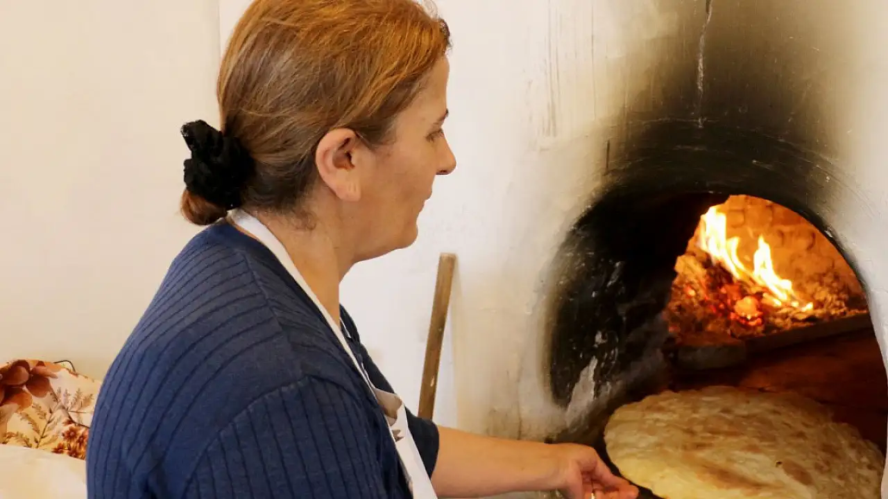 Sivas'ın Divriği ilçesinde bulunan tarihi Hüma Hatun Sokağı'nda taş fırın ekmeği üreten Saime Demir, evine destek oluyor