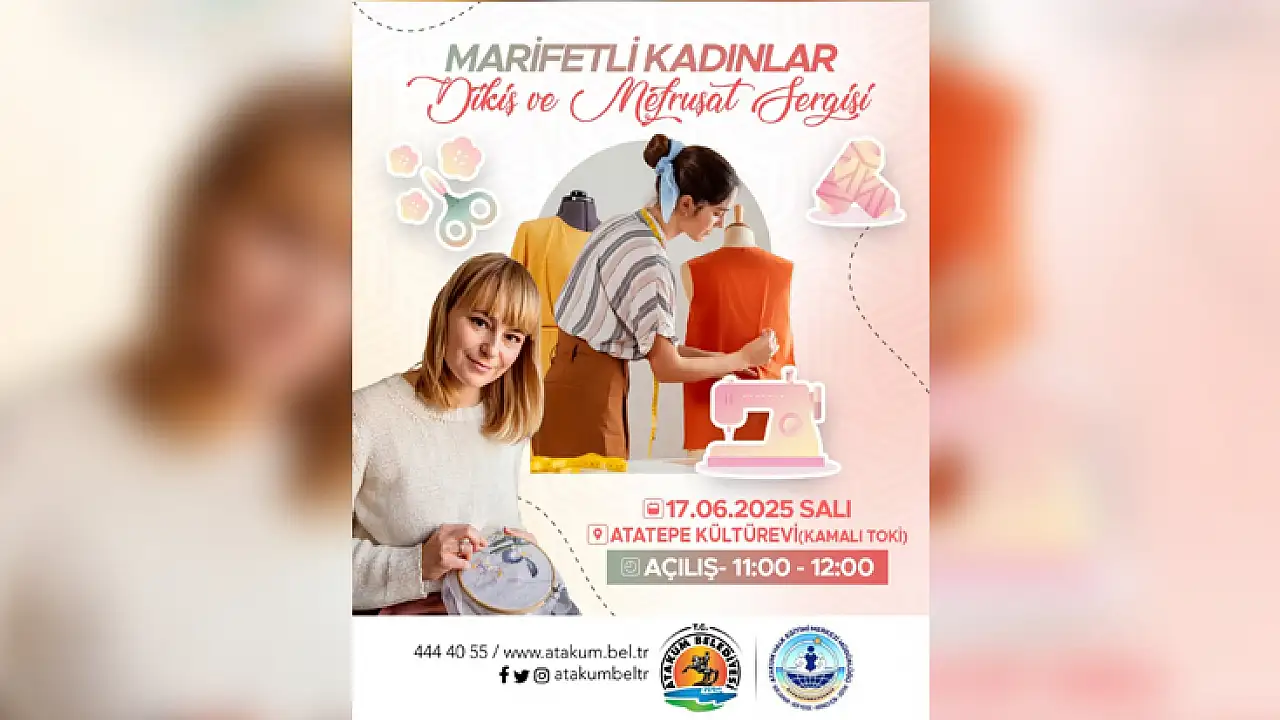 Atakum Belediyesi ve Atakum Halk Eğitim Merkezi Müdürlüğü iş birliğinde ‘Marifetli Kadınlar Dikiş ve Mefruşat Sergisi’ Atatepe Kültür Evi’nde düzenlenecek. Merkezin kurslarına katılan emekçi kadınların el emeği ürünlerinin yer aldığı sergi, 17 Haziran Salı günü saat 11.00’de kapılarını açacak. Sergide dikişten nakışa ve mefruşata el emeği göz nuru eserler, sergilenecek.