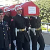 Şehit babası Cemil Akyel'in tabutuna sarılan Türk bayrağı bir subay tarafından şehit amcasının ismini taşıyan torunu Ferruh Akyel'e takdim edildi.