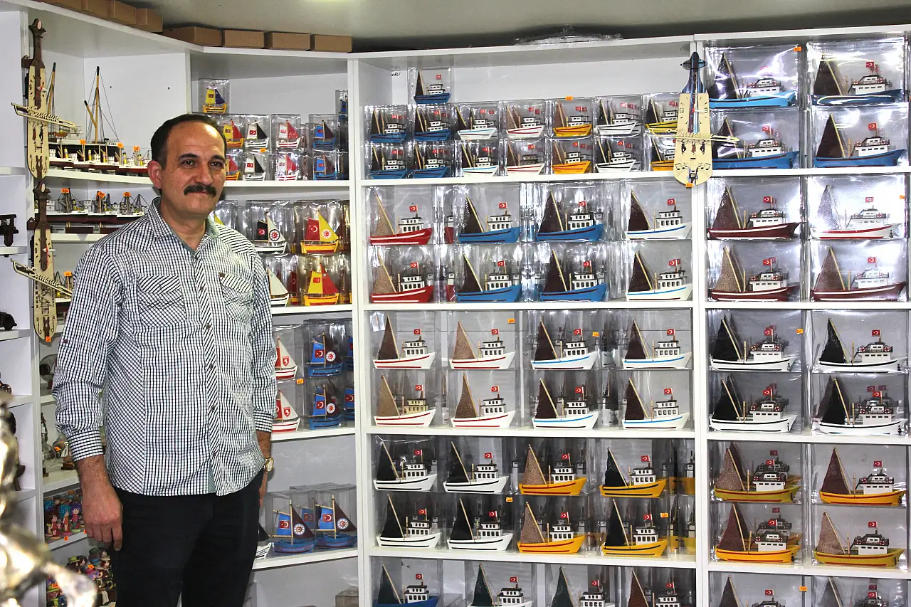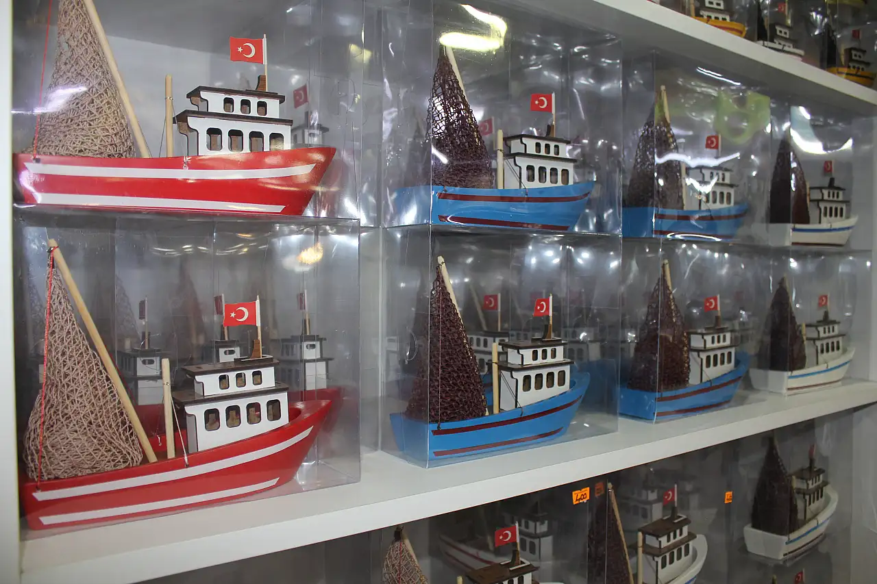 Bayraktar’ın atölyesinde, boyutuna ve detayına göre yapımı iki gün ile bir ay arasında değişen 8-10 çeşit balıkçı takası ve taraftar temalı tekne modeli bulunuyor. Her geminin yapım süreci farklı bir emek gerektiriyor. Ürünlerini toptan vermenin yanı sıra, dükkânında perakende olarakta satışa sunuyor.
