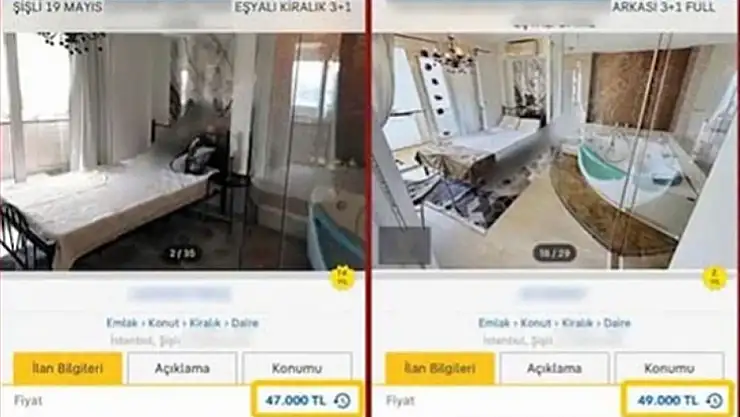 İstanbul Şişli'de bulunan aynı daire, üç ayrı emlakçı tarafından 47 bin, 49 bin ve 53 bin TL olmak üzere üç farklı kira bedeliyle ilana çıkarıldı. Bu durumun potansiyel kiracılar arasında kafa karışıklığına yol açtığı belirtilirken, uzmanlar bu tür uygulamaların hem tüketiciyi yanılttığına hem de piyasayı manipüle ettiğine dikkat çekerek uyarılarda bulundu.