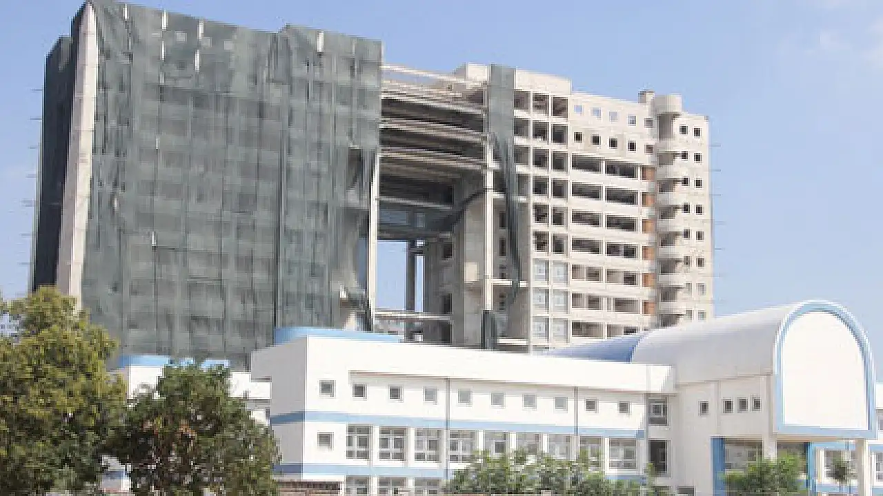 Adana'da uçakların iniş ve kalkış güzergahı dikkate alınmadan 14 katlı inşa edilen ve mühürlenen Emniyet Müdürlüğü yeni hizmet binasının son 6 katının yıkım çalışmaları başladı.