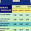 Üretici Fiyatları Endeksi, 2012 yılı Kasım ayında bir önceki aya göre yüzde 1,66, bir önceki yılın Aralık ayına göre yüzde 2,58, bir önceki yılın aynı ayına göre yüzde 3,60 ve 12 aylık ortalamalara göre yüzde 6,98 artış gösterdi.