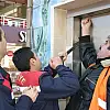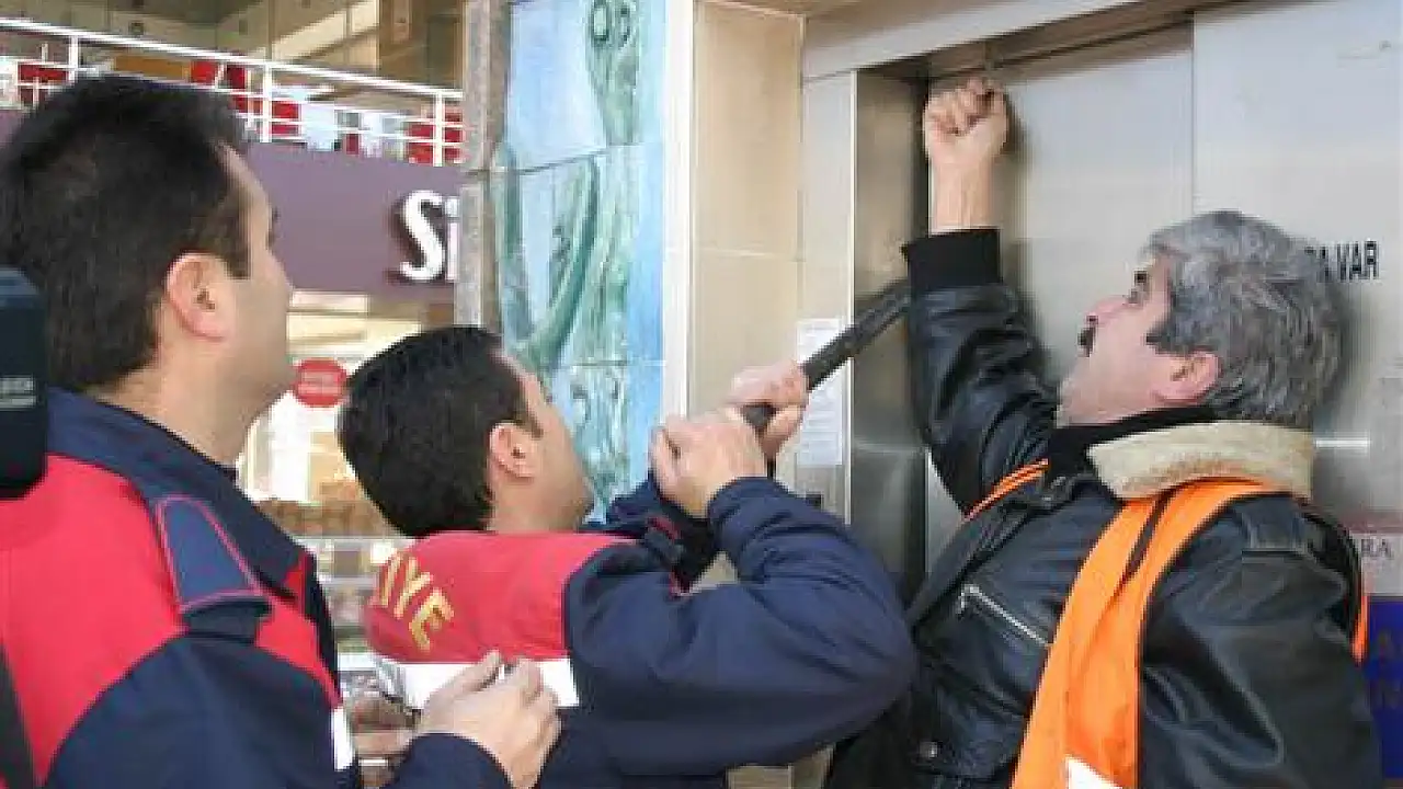 belediye görevlileri kapıyı bir türlü açamadı. Levye yardımı ile kapıyı açıp aileyi kurtarmak isteyen ekipler, zaman zaman onları sakinleştirmek için "Merak etmeyin sizi kurtaracağız" diye seslendiler. Bazı vatandaşlar da ekiplere yardım etmeye çalıştı. Yaklaşık yarım saat süren çalışma sonucu sonunda kapıyı açmayı başaran ekipler anne, oğlu ve kızını asansörden çıkardı. "Engelliler asansöründe ne işiniz vardı?" sorusuna genç kadın, "Oğlum kalp hastası. Onun için bu asansörü kullanmak zorunda kaldık" diye