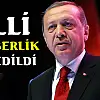 “Millet olarak yeni bir ahitleşmeye gitmemiz, yeni bir mefkura birliği oluşturmamız gerekiyor. Gün husumet günü, eski defterleri karıştırma günü değildir” diyerek birlik ve beraberlik mesajları veren Erdoğan, “Eğer birliğimizi, beraberliğimizi güçlendirmez, bu saldırıların karşısında çelik gibi bir irade, tam bir kararlılıkla durmazsak hiç birimiz yarınlarımıza güvenle bakamayız. Hepimiz aynı gemide olduğumuza göre bu gemiye yönelik her saldırı hepimize yapılmış bir saldırıdır. Buna karşı gereken mücadeleyi vermek hepimizin görevidir. Geldiğimiz noktada artık savunmada kalma imkanına sahip değiliz. Mademki bize terör örgütleri üzerinden tarihimizin en büyük saldırılarından birisi yapılıyor, öyleyse bizim misli ile cevap vermek hakkımızdır. Terörün sokağa inmesi bu ülkenin 80 milyon vatandaşının her birini hedef aldığı anlamına geliyor. Sokakta bomba patlatan teröristin tek gayesi vardır, mümkün olduğu kadar çok kan dökmek, can almak, acı çektirmektir. Bu yöntem ile eylem yapan terörist için ölenin kökeni, inancı, meşrebi önemsizdir. ‘Kurşun adres sormaz’ derler, bomba da bunların hiçbirisini sormaz. Mücadelemizi sadece kurumlara, sadece güvenlik güçlerine bırakamayız. Bu mücadeleyi hep birlikte vereceğiz. Muhtar dediğimiz bulunduğu köyün, bulunduğu mahallenin hangi evinde kim var, bunları bilendir. Buradan tüm vatandaşlarıma da sesleniyorum, anayasamızın 104. maddesine göre Türkiye Cumhuriyeti Devletinin başı olarak PKK’sı ile DEAŞ’ı ile FETÖ’sü ile DHKP-C’si ile diğerleri ile adı, söylemi, yöntemi ne olursa olsun tüm terör örgütlerine karşı milli seferberlik ilan ediyorum. Her kim bu örgütlerin çalışmaları ile elemanları ile ilgili herhangi bir şey görürse, duyarsa, malumat sahibi olursa hemen güvenlik güçlerimize bilgi vermelidir. Terör örgütlerinin meselesinin hak elde meselesi, bir davayı savunma meselesi olmadığını artık herkesin anladığına inanıyorum. Çok açıktır ki terör örgütlerinin tek meselesi Türkiye’yi bölgedeki diğer ülkeler gibi köken, inanç ve meşrep farklılıkları üzerinden çatışmalarla parçalamak, yıkıp yok etmektir. Esasen ülkemizdeki hiçbir kesimin, hiçbir kişinin hakkını aramak için terör yöntemlerine başvurmasını mazur kılacak en küçük bir sebep yoktur. Türkiye’deki demokratik hak arama yollarının çeşitliliğini ve toleransını Avrupa ülkelerinde dahi bulamazsınız. Avrupa Avrupa diyorlar ya, hikaye. Bu toleransı hiç birisinde bulamazsınız. Bugün terörle mücadelemiz için bizi eleştirenlerin kendilerine yönelik en küçük bir tehdit karşısında ne kadar katı ve hoyrat olabildiklerini çok iyi biliyoruz. Açıkçası onların ne düşündüğü ne söylediği bizi çok ilgilendirmiyor. Bizim ölçümüz hiç kimsenin bu memleketin herhangi bir yerinde kendi kirli amaçları için bomba patlatma, pusu kurma, eylem yapma, propaganda yapma hakkı ve özgürlüğü yoktur. Vatandaşlarımızın can ve mal güvenliklerine tehdit oluşturan her terörist 80 milyonun tamamının düşmanıdır ve ona göre de muamele görecektir. Bu anlayışla şimdide buradan tüm güvenlik güçlerimize sesleniyorum, terör örgütlerinin faaliyetlerine karşı devletiniz de milletimiz de sizin yanınızdadır, arkanızdadır. Yetkilerinizi sonuna kadar kullanmaktan asla çekinmeyin. Şehitlerimizin tek bir damla kanı teröristlerin tamamının kanlarına karşılık gelemez. Güvenlik güçlerimiz yürüttükleri mücadelede ölürlerse şehittir, kalırlarsa gazidir. Ama askerimiz, polisimiz bu memlekete sağ olarak, sağlam olarak lazım. Güvenlik güçlerimizden terör örgütlerine ve teröristlere karşı kanunların elverdiği en ağır, en sert muamele ile kararlı bir şekilde mücadele etmelerini istiyorum. Herkes bu ülkenin, bu milletin istiklaline ve istikbaline kastetmenin bedelinin ne olduğunu görmelidir. Eğer bu şekilde hareket etmezsek milletimiz ‘ya devlet başa ya kuzgun leşe’ demeye başlar ki asıl tehlikeyi o zaman yaşarız. Böyle bir serzenişe meydan vermeden devlet olmanın gereğini yerine getirmek mecburiyetindeyiz. Bundan sonra dağdaki teröriste de, şehirdeki teröriste de, onları destekleyen hiç kimseye bir an bile huzur yok, rahat yok. Devletimiz tüm birimleri ile milletimiz de her bir ferdi ile terör örgütlerine nefes aldırmayacak. Muhtarlarımıza birinci derecede görev düşüyor. Hangi evde kim var kim yok bunları emniyet güçlerimize bildirmelisiniz. Zaten bir muhtar mahallesinde, köyünde kimlerin olduğunu, gelinin gidenin kimler olduğunu bilemiyorsa o da görevini tam manasıyla yapamıyor demektir. Bunların hepsi güvenlik güçlerine bildirilmeli. Eğer bu iletişim sağlanırsa o zaman bunlar kendilerine kaçacak delik arayacaklardır” açıklamasında bulundu.