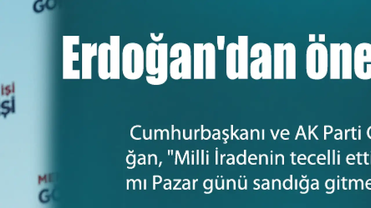 Cumhurbaşkanı ve AK Parti Genel Başkanı Recep Tayyip Erdoğan, 'Milli İradenin tecelli ettiği yer sandıktır. Tüm vatandaşlarımı Pazar günü sandığa gitmeye davet ediyorum' dedi