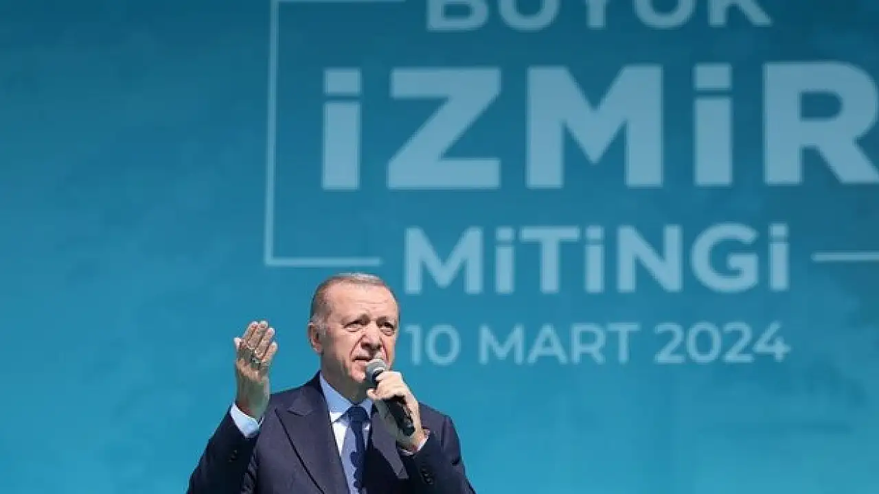 Cumhurbaşkanı ve AK Parti Genel Başkanı Recep Tayyip Erdoğan, partisinin Gündoğdu Meydanı'nda düzenlenen mitinginde, vatandaşlara hitap etti. İzmir'in, Milli Mücadele'nin zafer şehri, milli iktisadın ilham şehri, Anadolu'nun bereket kapısı, Ege'nin incisi olduğunu belirten Erdoğan, bir kez daha İzmirlilerle birlikte olmaktan memnuniyet duyduğunu ifade etti. "Şükür, efelerin, yiğitlerin var. Uğruna verilmiş şehitlerin var. Bugün gönlün mahzun olmuş ne çıkar? Bir gün sarılacak yaralar İzmir. Sana yakışmıyor karalar İzmir?" dizelerini okuyan Erdoğan, şunları söyledi: "Sadece başındaki kara bulutları değil vatanın istiklali üzerindeki hain emelleri de dağıtan İzmir'in yaralarını sarmaya az kaldı, 20 gün. Tamam ama durmayacağız. Ana kademe, kadın kolları, gençler 20 gün durmak yok. 31 Mart akşamı İzmir bir başka güzel olacak. Buna inanıyorum." İzmir'in bir asır önce düşmandan kurtulduğunu hatırlatan Erdoğan, "Ama epeydir eser ve hizmet fukaralarından yakasını maalesef kurtaramadı." dedi. Tarih boyunca Ege'nin en ışıltılı, en hareketli, en müreffeh şehrinin İzmir olduğunu ancak, şehrin hep yerinde saydığını dile getiren Erdoğan, şöyle devam etti: "Türkiye, tarihinin en büyük demokrasi ve kalkınma atılımlarıyla büyürken, gelişirken, zenginleşirken bu şehir hak ettiğinden yerel yönetimler açısından maalesef çok azını aldı. Hükümet olarak İzmir'e verdiğimiz destekler, yereldeki umursamazlık ve beceriksizlik sebebiyle arzu ettiğimiz etkiyi göstermedi. Sizleri Mecliste ve belediyelerde temsil etsin diye yetki verdiğiniz kişiler soruyorum ne yaptı? Yüzlerine Atatürk maskesi takıp her dönem yan gelip yattılar. Yetmedi, İzmirlinin can düşmanı olarak gördüğü terör örgütleriyle gizli saklı anlaşmalar yaptılar. Yetmedi, kendi içlerinde çıkar kavgasına tutuştular. Hem de ne kavga. Hani Tepecik'teki o meşhur kavgalar var ya bunun yanında çocuk oyuncağı kalır. Hepsinin üstüne bir de 'çantada keklik' olarak gördükleri iradenizi açık arttırmaya çıkardılar. Mayıs seçimlerinde yaşananları biliyorsunuz. Sizlerin oyuyla her gün bir yenisi ortaya çıkan pazarlıklarla, Meclise taşıdıkları kişiler şimdi nerede? Bu seçimlerde sizlerin oyuyla seçileceklerin bir kısmının yarın nerede olacağını biliyor musunuz? Cumhur İttifakı bu konuda gayet şeffaf. AK Partili ve MHP'li belediye başkan adaylarımızı bizzat kendimiz sahneye çıkartıp takdim ediyoruz."