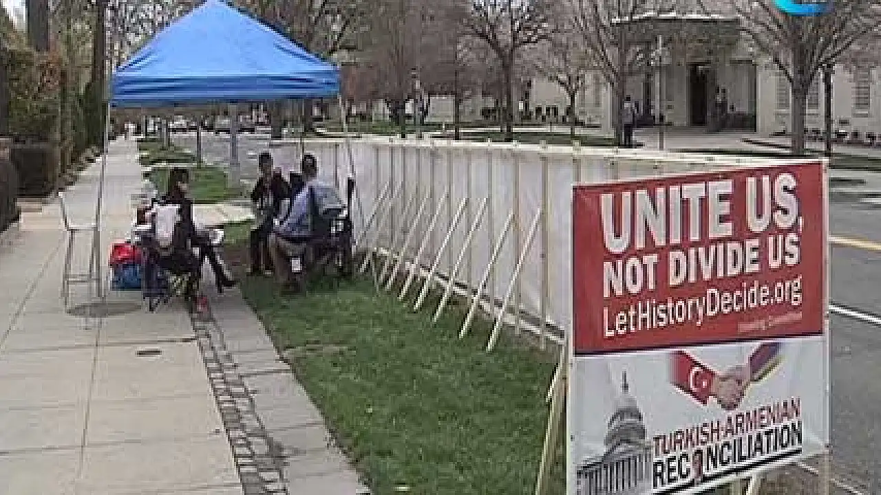 ABD'de yaşayan Türkler, 'Sözde Ermeni Soykırımı'nın' anıldığı 24 Nisan öncesinde Ermeni protestoculara bırakmamak için Türkiye'nin Washington Büyükelçiliği önündeki kaldırımda 10 gün önceden nöbet tutmaya başladı.