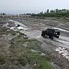 Kemah yolu üzerindeki bölgede off road keyfi yaşanırken bol çamurlu derede zaman zaman dev araçlar da çamura saplanarak hareket kabiliyetini kaybetti.