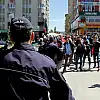 HDP Eşbaşkanı Selahattin Demirtaş’ın da katılacağı miting öncesi bir grup vatandaş ellerinde Türk bayrakları ile mitingin yapılacağı İstasyon Meydanına geldiler. Alan girişinde polis barikatıyla karşılaşan grup ile polis arasında yaşanan gerginlik arbedeye dönüştü. Miting alanına gelen HDP’liler ile mitingin yapılmasına tepki gösteren şahıslar arasında yaşanan arbede de bir kişi linç edilmek istendi. Polis şahsı grubun elinden güçlükle kurtarabildi. Miting alanındaki HDP’li grup ile alan dışındaki grup arasında polis adeta etten duvar örerken yaşanan gerginliği tazyikli su ve gaz bombası ile müdahale etti.