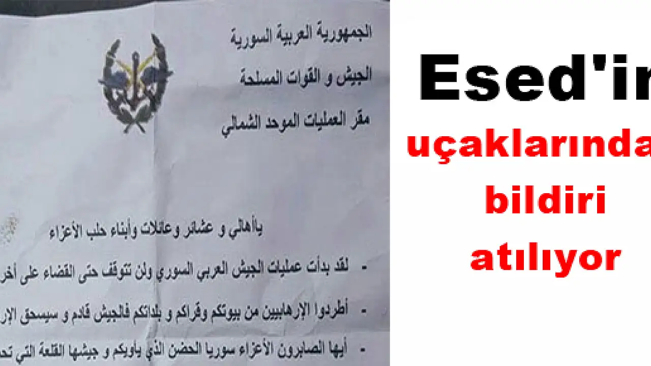 Esad rejimine ait ordu birliklerinin hazırladığı Arapça bildiriler, uçaklarla Halep ve Azez'e atıldı. Rejim karşıtı gruplara teslim olmaları çağrısında bulunulan bildirilerde, bölge halkının da rejimin yanında savaşmaları istendi.