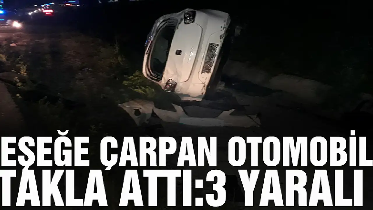Eşeğe çarpan otomobil takla attı:3 yaralı